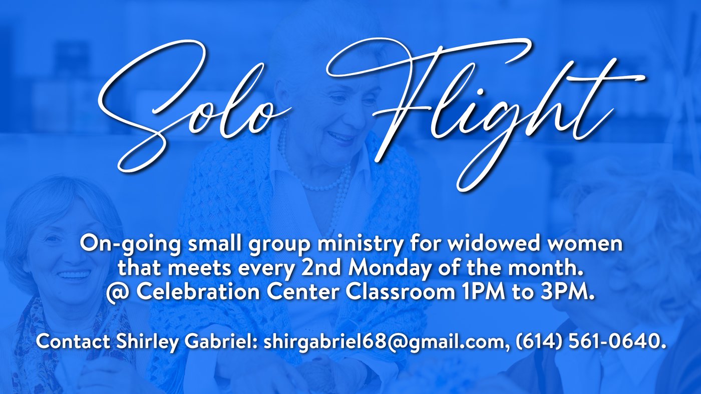 Solo Flight is an ongoing small group of Women meeting once a month for a Devotional, and to meet emotional and social needs.